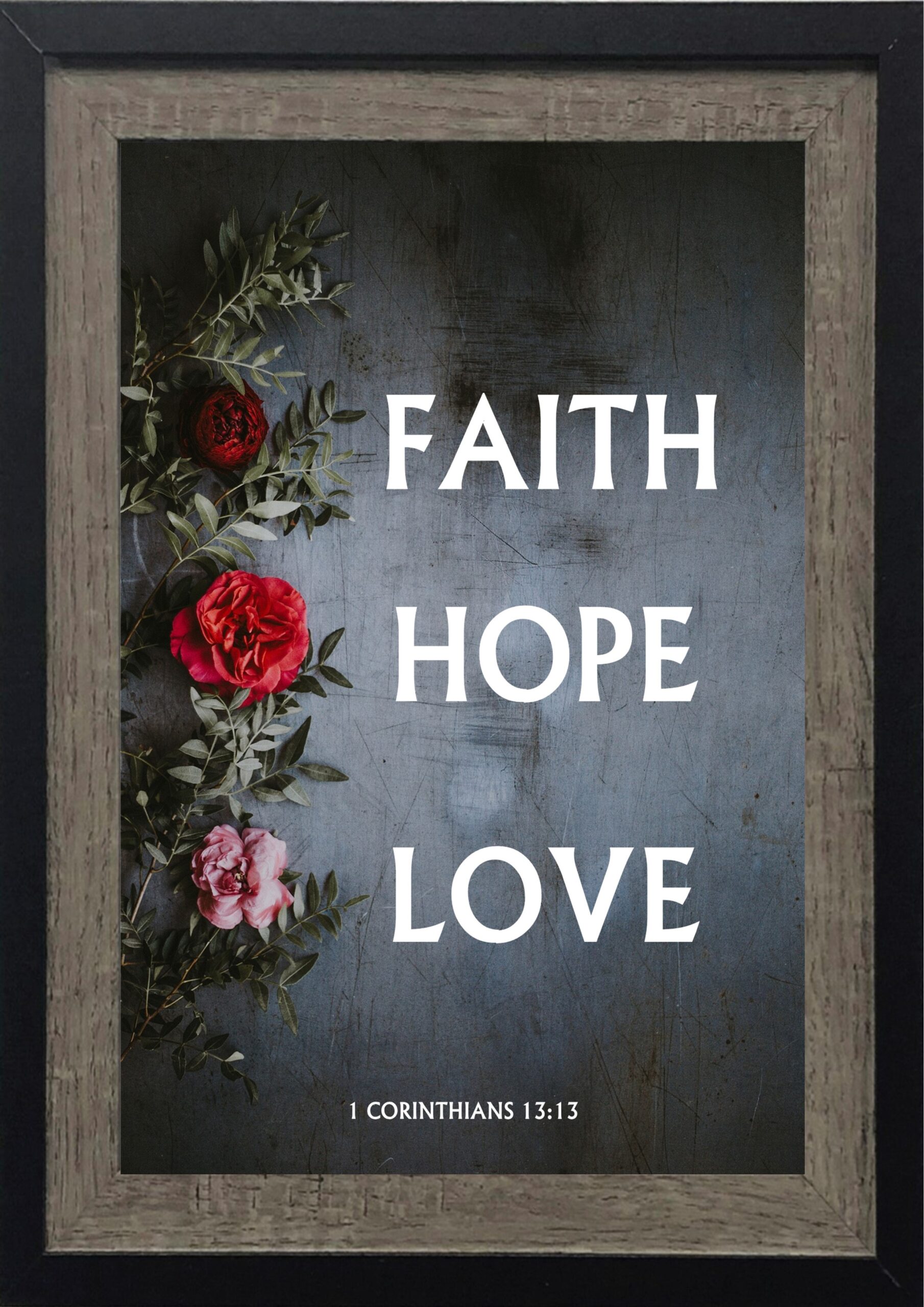 Message on Frame and Scripture : Faith Hope and Love – 1 Corinthians 13:13.