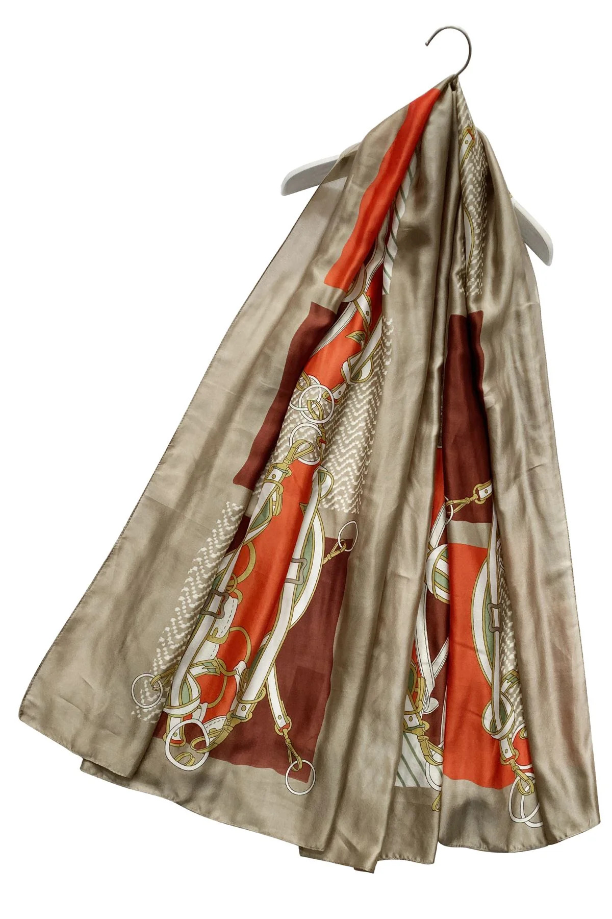 Be the first to review “Fashion Buckle Print Silk Scarf – Brown” Cancel reply