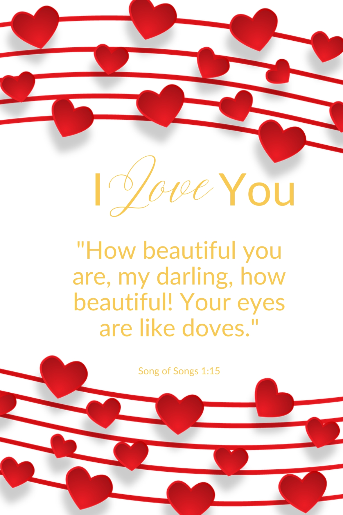 Message on front of Card “How beautiful you are, my darling, how beautiful! your eyes are live doves”