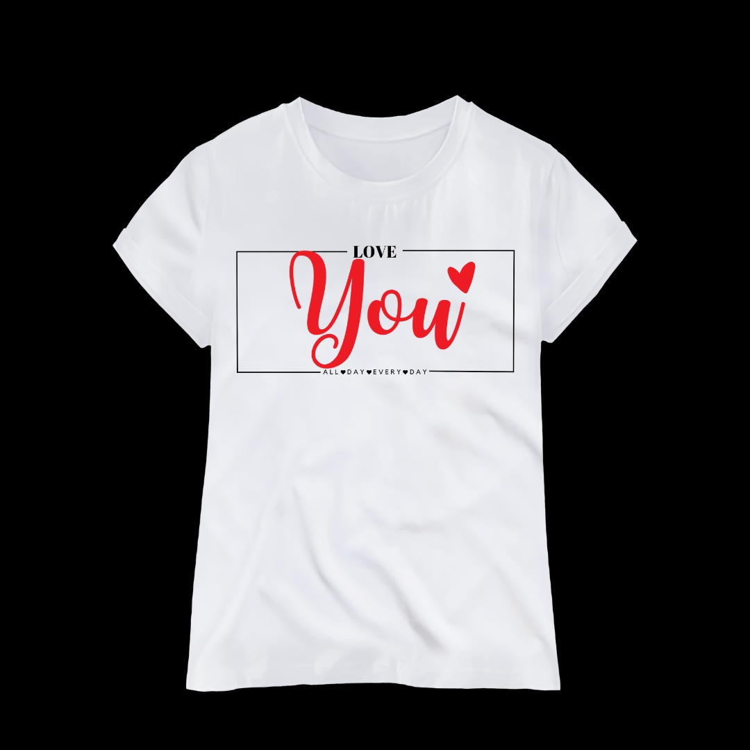 Luxury “Love You All Day Every Day” T-Shirt would look beautiful on anyone. To be purchased either as a gift on Valentine’s day to bless someone with or the perfect treat to add to your favourite T-shirts.