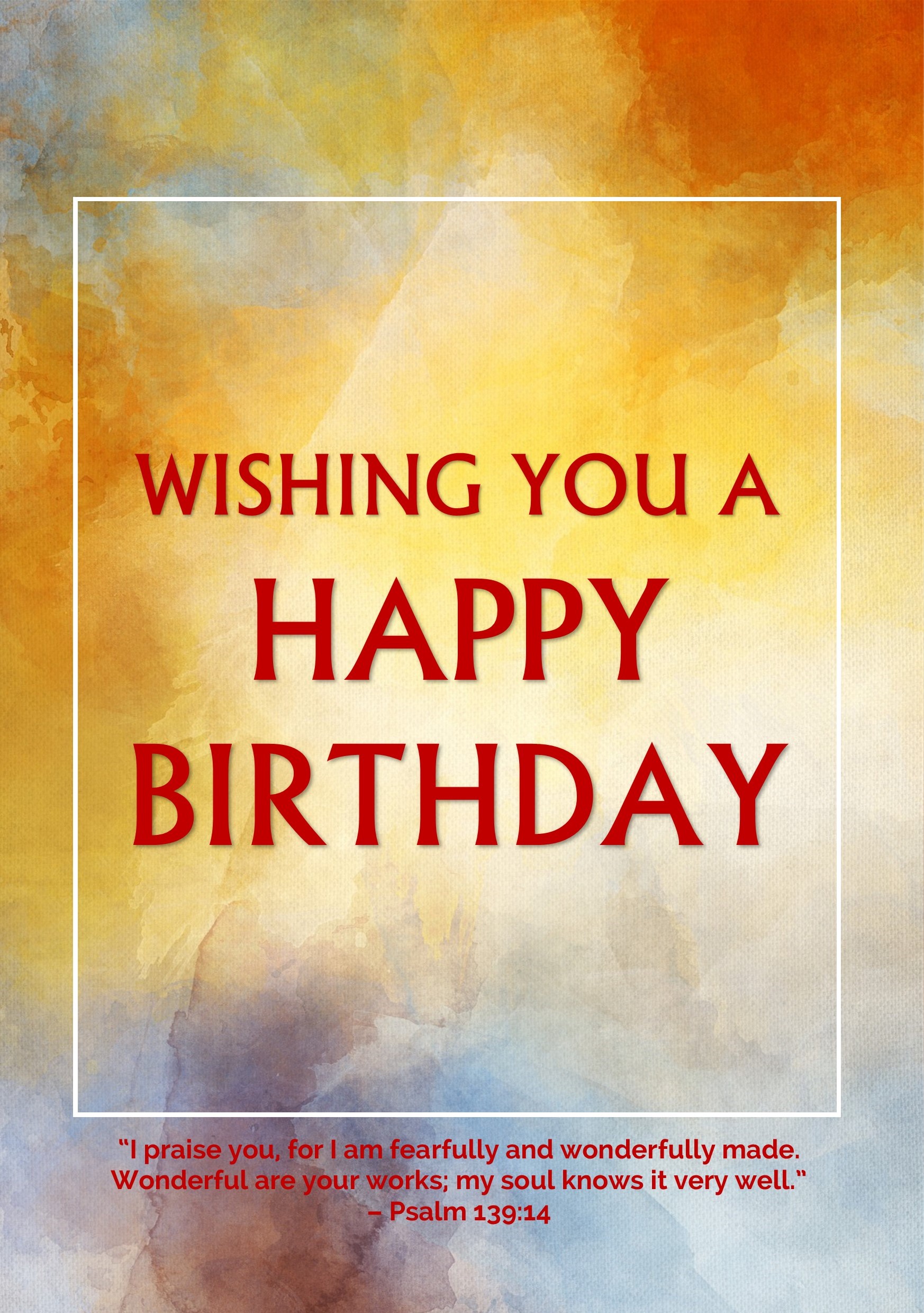 Message on front of Card “Wishing You A Happy Birthday– Psalm 139:14”